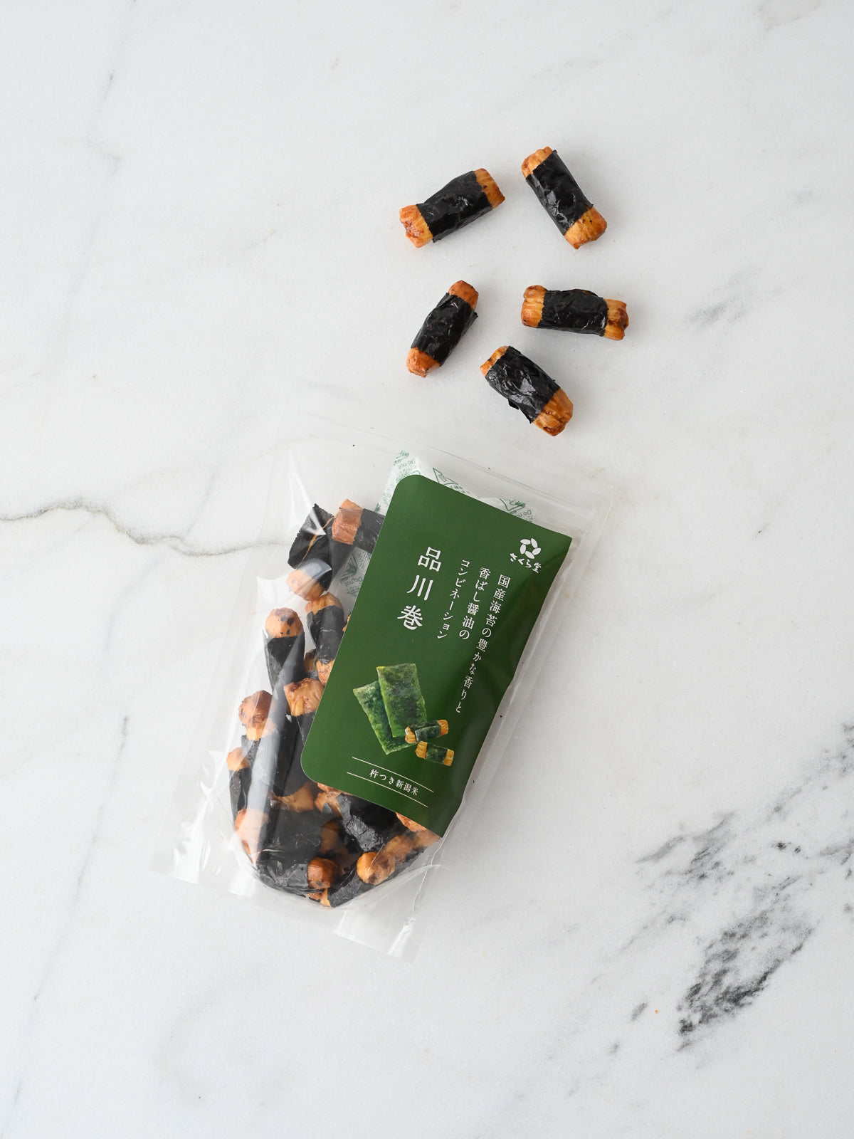 Made from glutinous rice grown in Niigata, the center of rice farming in Japan, and hand-wrapped with nori, these rice crackers have a sweet soy sauce flavor paired with umami-rich seaweed, making them totally addictive.